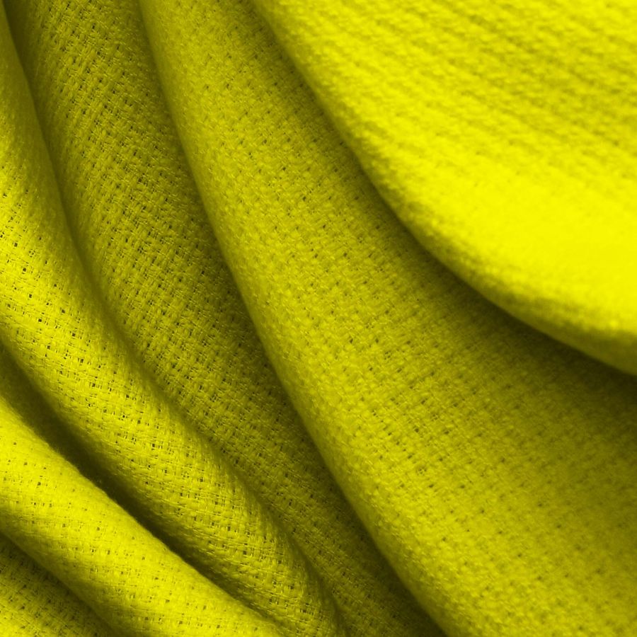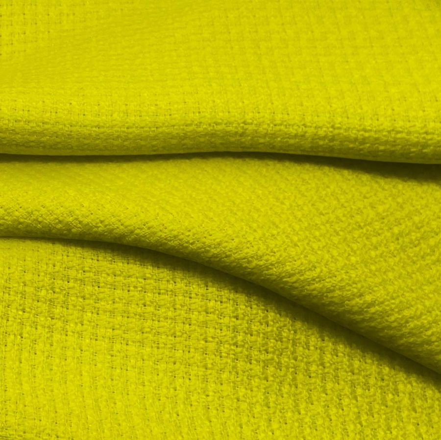 La tela base es el Tweed Chanel, un tejido de poliéster con un gramaje de 420 gr/m2 y un ancho de 150 cm. Su color liso impreso es amarillo verdoso, con un CMYK de 20 4 96 0. Este color, simbólicamente, se asocia con la naturaleza y la frescura, evocando el follaje y las hojas de los árboles, así como la suavidad en los tonos pastel. Técnicamente, este color combina perfectamente con tonalidades neutras terrosas como el beige, marrón y marfil.