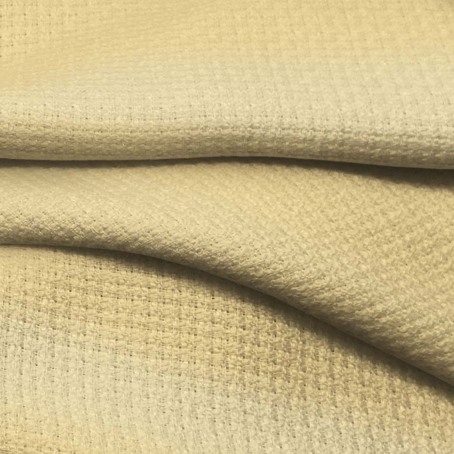 La tela base es el Tweed - Chanel, una tela de tweed con composición 100% poliéster, peso de 420 gr/m2 y ancho de 150 cm. El color liso impreso es un hermoso Amarillo Veronés con una mezcla de 0 Cyan, 13 de Magenta, 48 de Amarillo y 0 de Negro, lo que da como resultado un tono amarillo dorado brillante con tonalidades verdes sutiles. Este color es ideal para complementar tonos naturales y terrosos, así como otros colores pastel, como rosas y malvas.