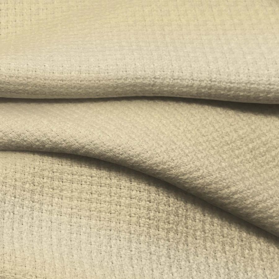La tela base es Tweed - Chanel, un tejido rígido de alta calidad compuesto al 100% de poliéster con un gramaje de 420gr/m2 y ancho de 150cm. El color liso impreso tiene una tonalidad de amarillo ocre claro, con una mezcla de 8 de tinta cian, 13 de tinta magenta y 40 de tinta amarilla, en una proporción de CMYK de 8 13 40 0. Este color evoca la naturaleza, el sol y la vitalidad. Combina bien con tonos marrones y beige, verdes oliva y azules teja. Es importante puntualizar que se trata de un tejido impreso por una sola cara con impresión digital textil.