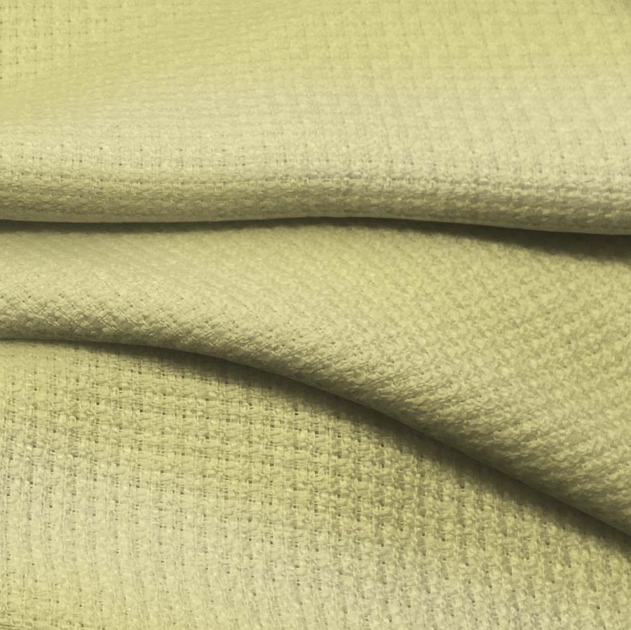 La tela base es el Tweed - Chanel, un tejido de Tweed con composición 100% poliéster, gramaje de 420 gr/m2 y ancho de 150 cm. El color liso impreso es un amarillo rubio pajizo con un CMYK de 14 8 54 0. Este color se asemeja al color de la paja de trigo, lo que transmite calidez y elegancia. El amarillo pajizo combina bien con otros tonos cálidos como el rosa, naranja y marrón, así como con tonos fríos como el azul y el verde.