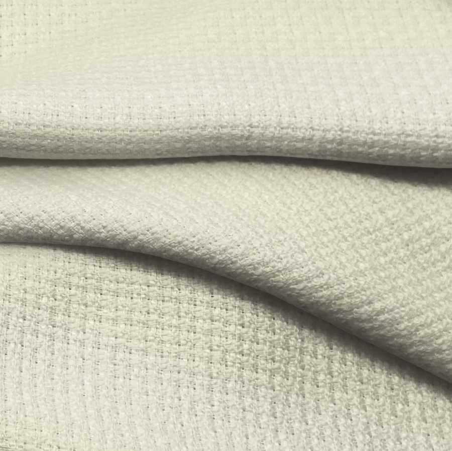 La tela base Tweed - Chanel es una tela tweed compuesta al 100% por poliéster, con un gramaje de 420 gr/m2 y un ancho de 150 cm. El color liso impreso en esta tela es blanco con matices de maíz, como indica su contenido de CMYK: 0 2 18 0. Este color se presenta en una sola cara de la tela, impreso mediante la tecnología de sublimación.