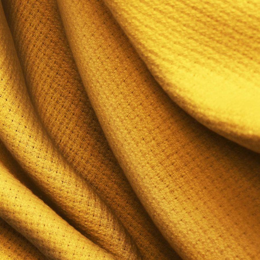 La tela base es un tweed de poliéster con un gramaje de 420 gr/m2, de una textura rígida al tacto. Su color es Naranja Aleación, con un CMYK de 18 55 98 7, lo que le aporta un toque de sofisticación y elegancia. Este color secundario es una mezcla de naranja y marrón, que representa la combinación perfecta entre la energía y la estabilidad emocional. En combinación con otros colores, el Naranja Aleación funciona especialmente bien con tonos como el beige, el blanco o el negro, creando un contraste vibrante y atemporal.