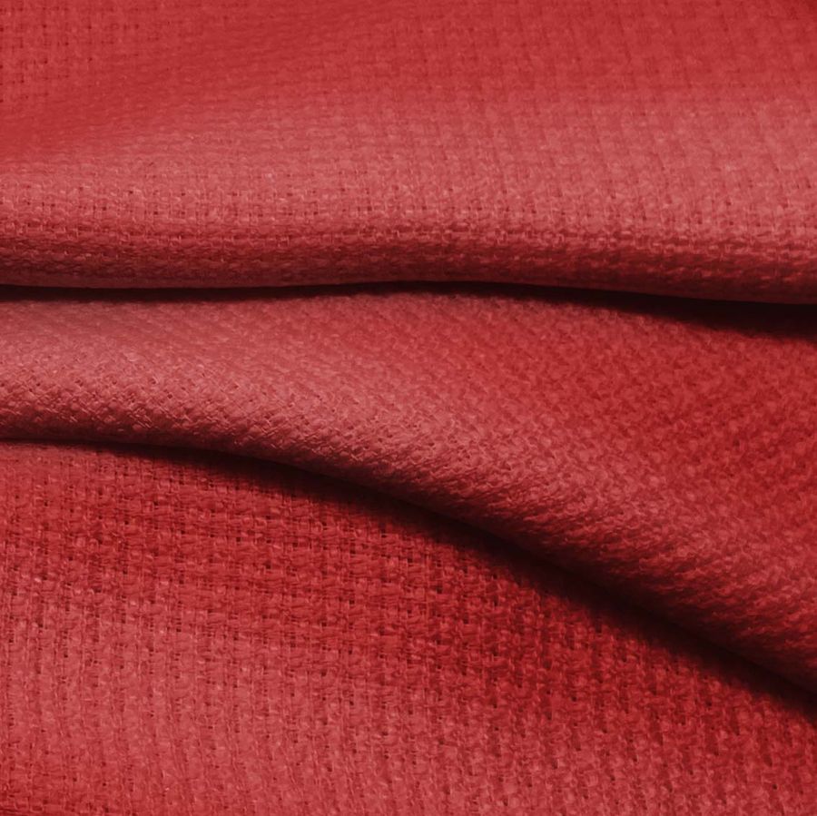La tela base de este tejido es el Tweed - Chanel, una tela de tweed compuesta por 100% poliéster con un gramaje de 420 gr/m2 y un ancho de 150 cm. El color liso impreso en este tejido es un rojo auburn, con un contenido de tinta cyan de 24, tinta magenta de 93, tinta yellow de 82 y tinta black de 19, dando como resultado un CMYK de 24 93 82 19. Este color secundario simboliza la pasión y el dinamismo, suavizado por un tono más oscuro y terroso. Este color combina bien con otros tonos terrosos y neutros, como el beige, el marrón y el negro. Este tejido se imprime con el color liso a una sola cara por impresión digital textil, lo que significa que la impresión se realiza en la superficie exterior de la tela.