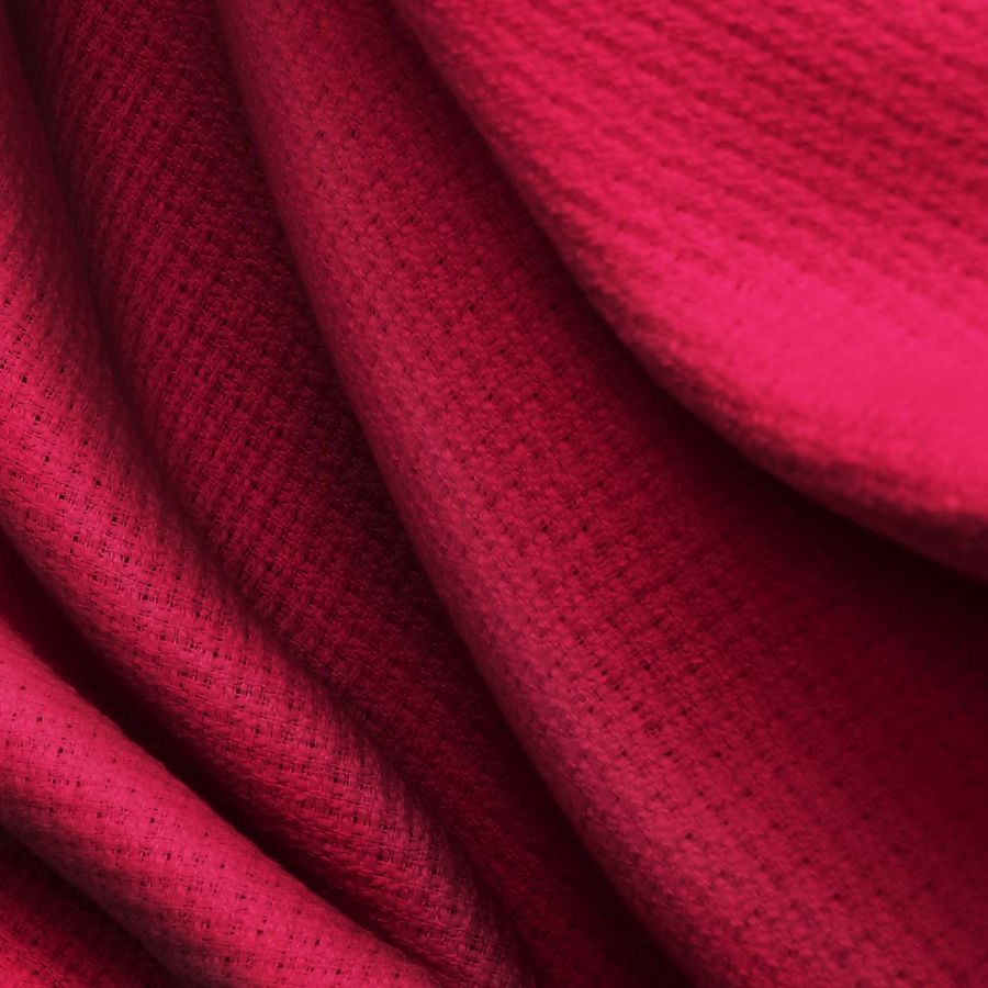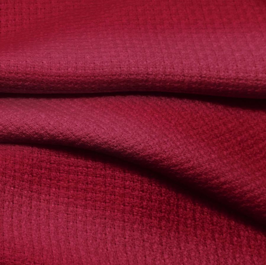 La tela Tweed - Chanel de 100% POLIÉSTER, con un gramaje de 420gr/m2 y un ancho de 150cm, posee un color liso impreso en tonalidades de Rojo Borgoña, indicado por el CMYK 30 100 76 40. Este color se caracteriza por evocar fuerza, poder y pasión. Remite a la sensualidad y a la intensidad emocional y destaca por su elegancia y sofisticación. Su combinación con tonos cremas y dorados resalta su intensidad, mientras que con tonos grises y neutros se equilibra y gana en sobriedad. Esta tela impresa a una sola cara mediante impresión digital textil, presenta tanto las características de la base como las propias del color liso, siendo estas últimas la intensidad, la saturación y la profundidad de su pigmentación.