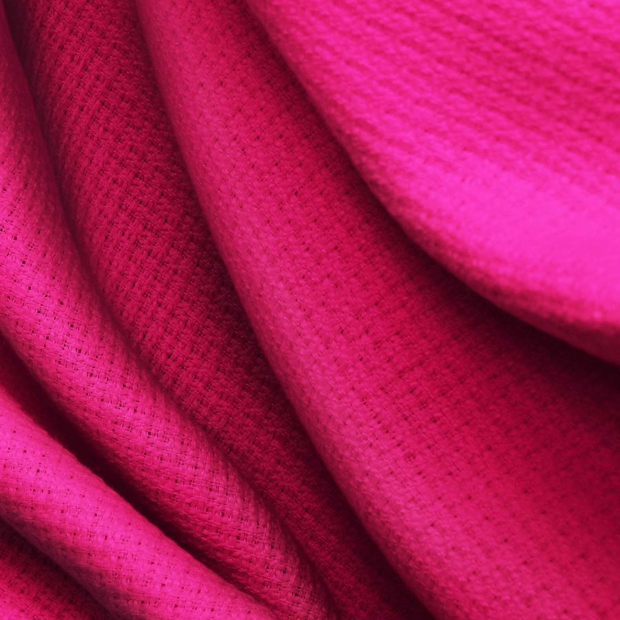 La tela base es un Tweed - Chanel compuesta en su totalidad por poliéster con un gramaje de 420 gr/m2 y un ancho de 150 cm. El color liso impreso es un rojo carmín pictórico, compuesto por una tinta cyan del 16%, una tinta magenta del 100%, una tinta yellow del 49% y una tinta black del 6%, lo que resulta en un CMYK de 16 100 49 6. Este color es un símbolo de la pasión, la energía y la determinación, a la vez que representa la vitalidad y la acción.
