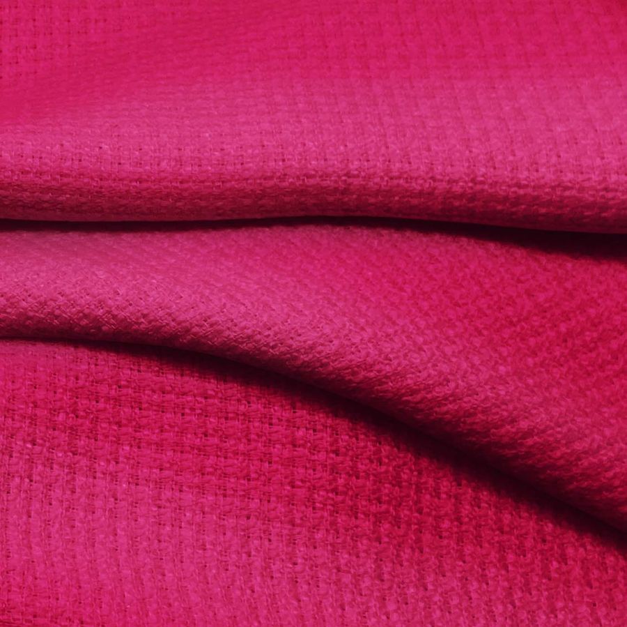 Es importante destacar que esta tela está impresa con el color liso a una sola cara por impresión digital textil, lo que significa que no es un tejido teñido sino impreso por una sola cara con alta precisión y detalle. En cuanto a las características generales, la tela base Tweed - Chanel se caracteriza por una textura rígida que proporciona una sensación de firmeza y solidez al tacto.
