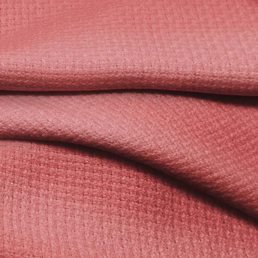 La tela base de este tejido es un Tweed - Chanel 100% POLIÉSTER con un gramaje de 420 gr/m2 y una anchura de 150 cm. El color liso impreso es un Rojo Fuzzy Wuzzy con una proporción de tinta Cyan de 16, Magenta de 69, Yellow de 51 y Black de 5 (16 69 51 5 en CMYK). Este color es un rojo oscuro cálido que transmite una sensación de seguridad y estabilidad. Combina muy bien con tonos más claros y suaves como el beige, el crema y el rosa.