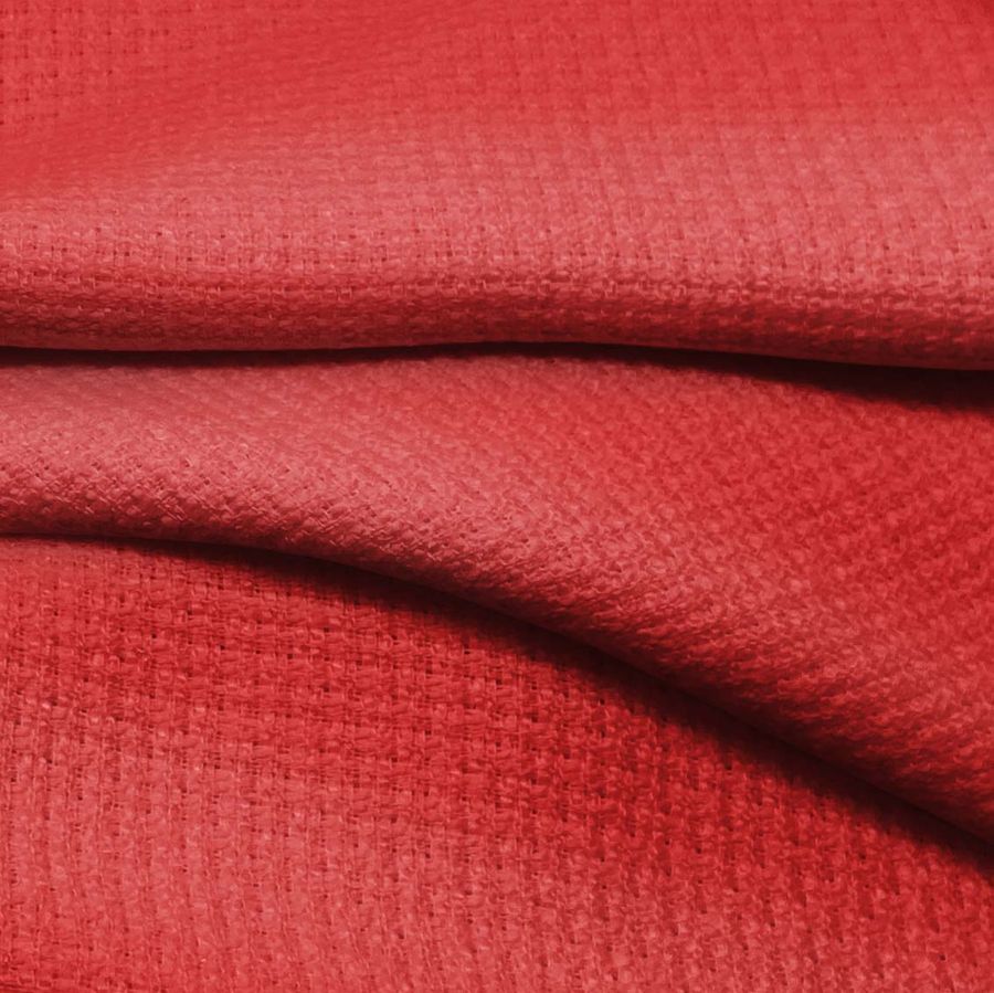 Esta es la Tweed - Chanel, una tela Tweed de 100% poliéster con un gramaje de 420 gr/m2 y un ancho de 150 cm. El color liso impreso es Rojo Persa, con un CMYK de 13 91 80 4. Este color simboliza la pasión y la fuerza, y técnicamente se genera mediante una combinación de tonos cálidos y oscuros. Complementa bien con colores neutros como el blanco y el gris, y con tonos más intensos como el negro y el azul marino. La tela está impresa con el color liso a una sola cara por impresión digital textil.