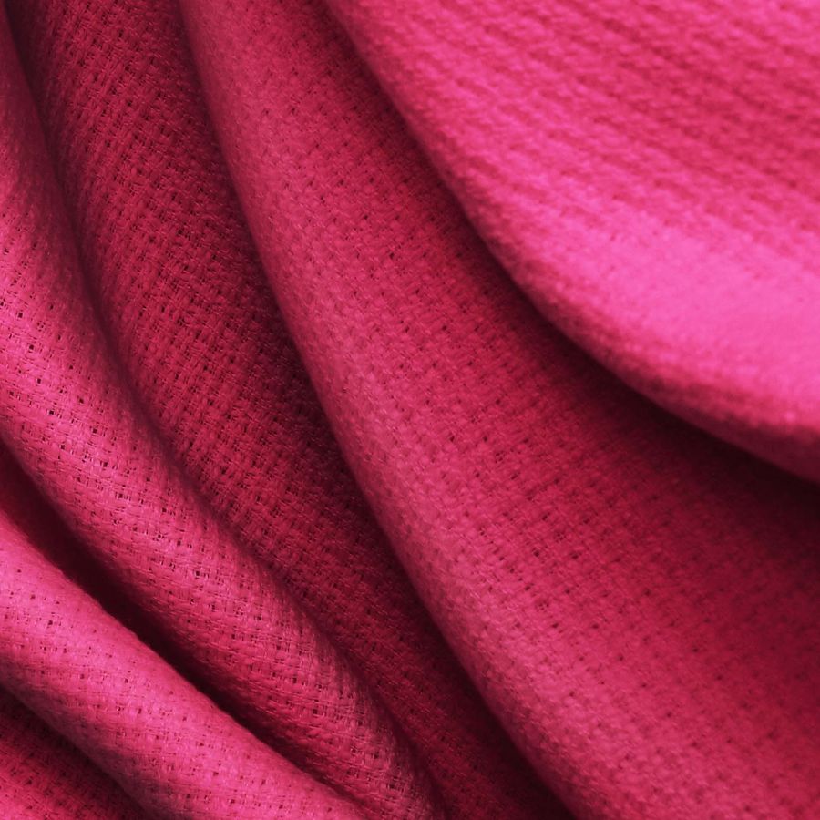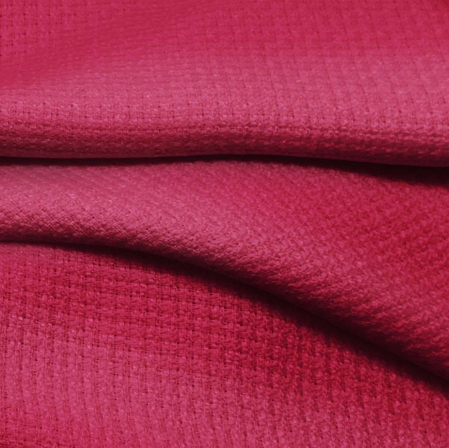 La tela base de esta prenda es el Tweed Chanel, una tela de tipo tweed con una composición del 100% poliéster y un gramaje de 420 gr/m2. El ancho de la tela es de 150 cm y su nombre proviene de la famosa Casa Chanel. El color liso impreso es un tono elegante y sofisticado de Rojo Vino Francés, que corresponde a un CMYK de 22 98 56 16 y que se combina perfectamente con tonos neutros como el negro, blanco o gris, así como con tonos tierra como el beige o el marrón.