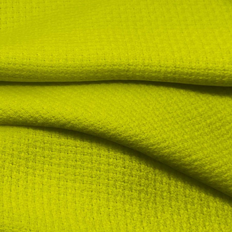 La combinación de colores de este Tweed es muy simbólica, ya que el verde es un color que representa la naturaleza, la juventud y la seguridad, mientras que el toque de amarillo evoca la energía y el optimismo. Con respecto a la combinación con otros colores, el verde oscuro y el beige claro son dos de los mejores colores para combinar con este tejido, ya que aportan un contraste que realza su elegancia y sofisticación.