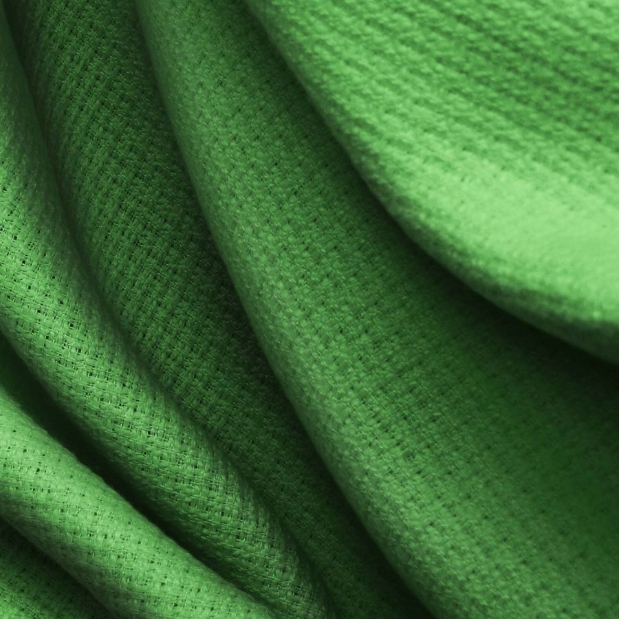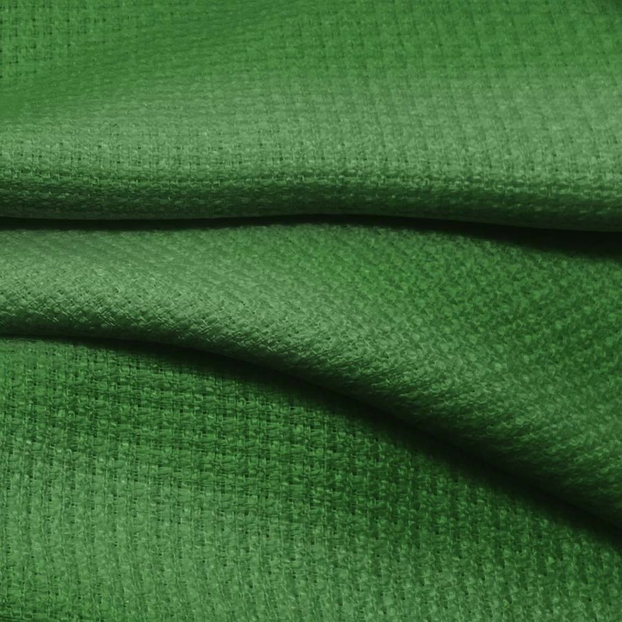 La tela base es un Tweed Chanel 100% poliéster de 420 gr/m2 con un ancho de 150 cm. El color liso impreso es un Verde Mocasín Oscuro, con una combinación de tintas en CMYK de 80-35-99-27. Este color simboliza la naturaleza y la tranquilidad, y se combina bien con tonos neutros y tierras.