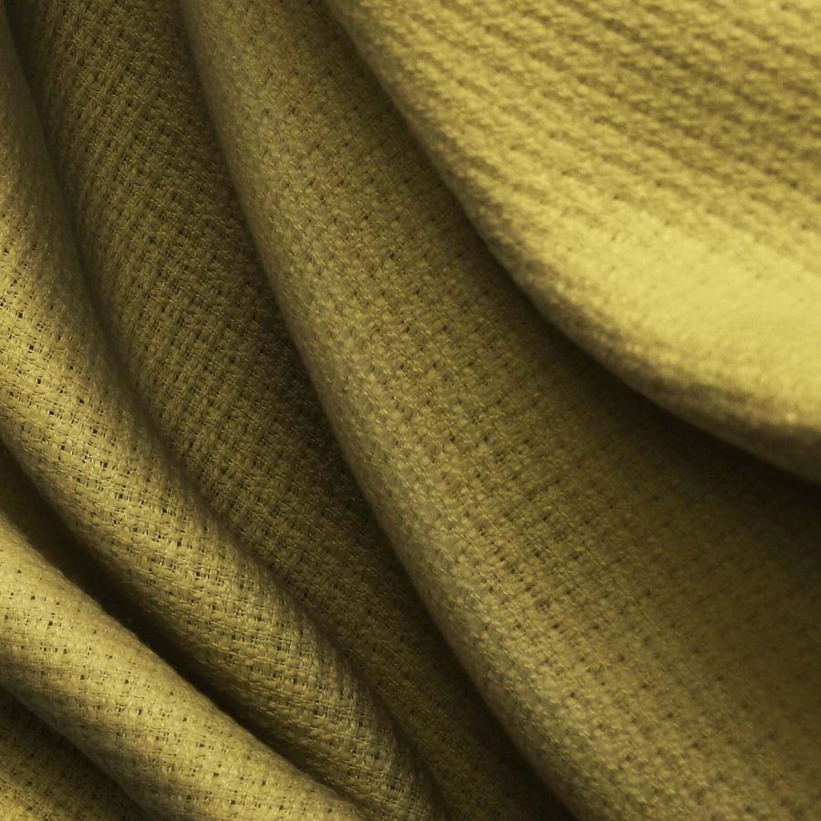 La textura de este tejido es rígida, lo que lo hace adecuado para prendas estructuradas como chaquetas, abrigos y blazers. Además, el Tweed de Chanel es conocido por su durabilidad y buen aspecto con el tiempo. Respecto al color liso impreso, este verde tierra combina a la perfección con tejidos neutros como el beige, con tonos terrosos y caoba, y, dependiendo del patrón o estilo, también podría combinarse bien con estampados florales y geométricos.