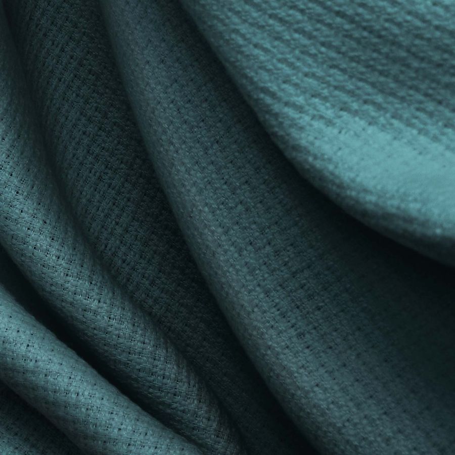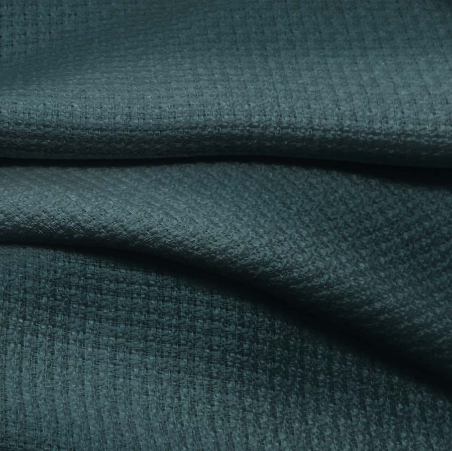 La tela base Tweed Chanel es un tejido rígido de composición 100% poliéster, con un gramaje de 420 gr/m2 y un ancho de 150 cm. El color liso impreso es un verde azulado, con una combinación de cian (84), magenta (54), amarillo (55) y negro (59) reflejada en su CMYK. Este color se inspira en la naturaleza, evocando la sensación de un bosque invernal y fresco al mismo tiempo. El verde azulado combina con tonos neutros, como el gris y el beige, así como con tonalidades cálidas como el ocre y el marrón oscuro.