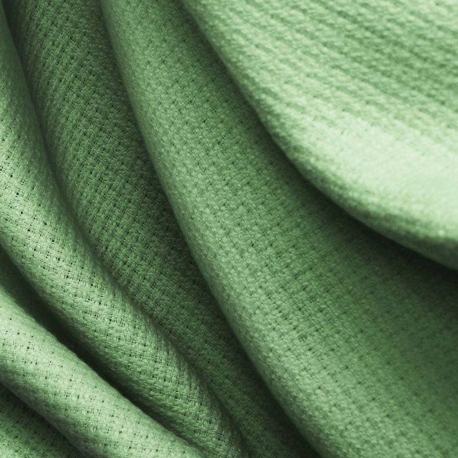 La tela base Tweed - Chanel es una tela de tweed compuesta por 100% poliéster con un gramaje de 420 gr/m2 y un ancho de 150 cm. El color liso impreso es verde marchito con una mezcla CMYK de 65 31 72 14. Este color representa un tono de verde oscuro y elegante con matices amarillos y marrones que, simbólicamente, evoca la naturaleza y la elegancia. Este color combina muy bien con tonos neutros como beige y gris, así como con tonos más vibrantes como naranjas y amarillos.