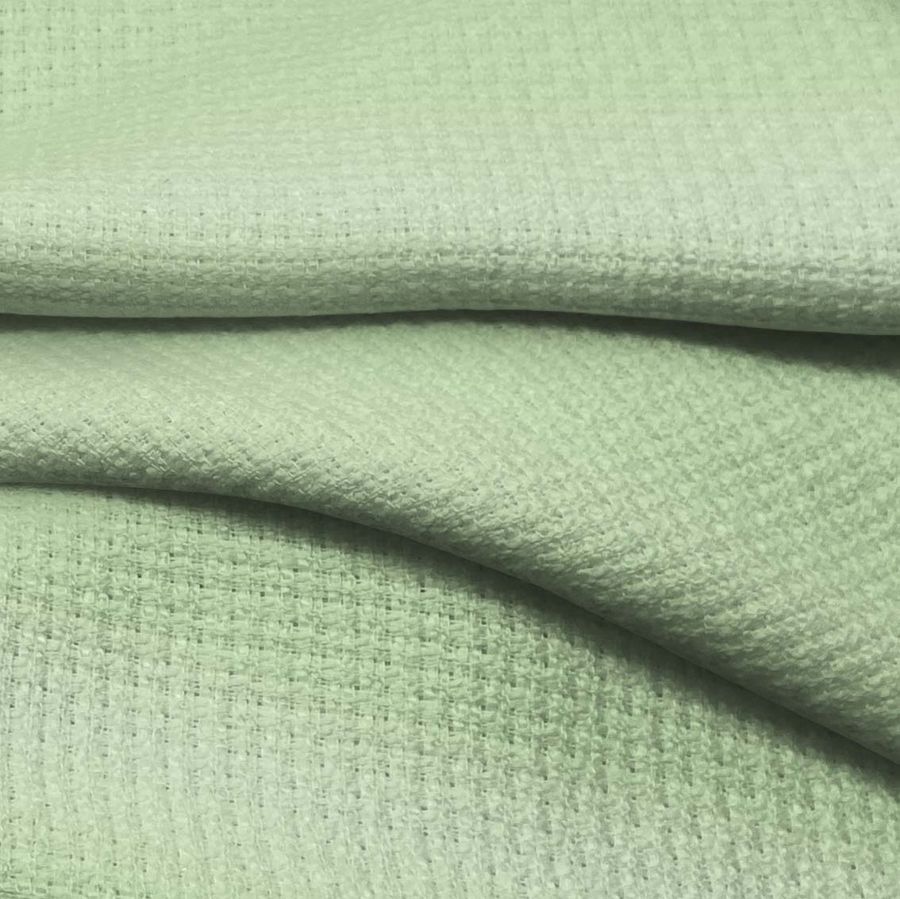 La tela base de este producto es Tweed - Chanel, una tela con un gramaje de 420 gr/m2 compuesta al 100% de poliéster. El color liso impreso en esta tela es verde pastel, con una tinta cyan del 28% y tinta yellow del 40%, lo que resulta en un CMYK de 28 0 40 0. Este color evoca un sentido de paz y frescura, asociado a la naturaleza y al ambiente sereno. Es un color versátil que se combina bien con otros tonos verdes, azules y grises.