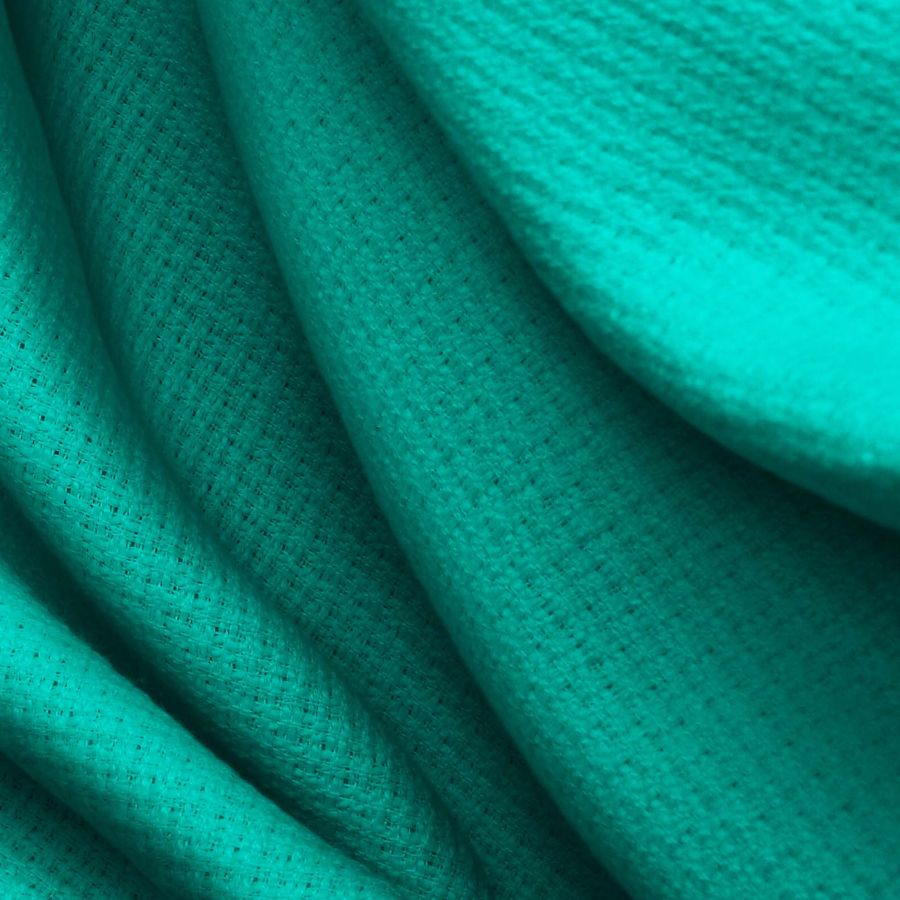 La tela base es un Tweed - Chanel de 100% poliéster con un gramaje de 420 gr/m2 y un ancho de 150 cm. El color liso impreso es un Verde Persa, con un CMYK de 78 7 51 0. Este color se puede describir como un verde intenso, con un tono azulado oscuro que evoca juventud y vitalidad. El Verde Persa combina especialmente bien con colores cálidos, como los tonos naranjas, marrones y dorados.