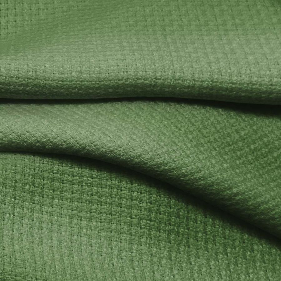 La tela base es el Tweed - Chanel, compuesta al 100% por poliéster y con un gramaje de 420 gr/m2. Su ancho es de 150 cm y el color liso impreso es verde reseda, con una combinación CMYK de 67 36 78 24. Este color secundario irradia vitalidad y frescura, simbolizando la naturaleza y la primavera. Además, combina perfectamente con tonos madera, beige y rosa palo, siendo ideal para la confección de prendas y accesorios para mujer.