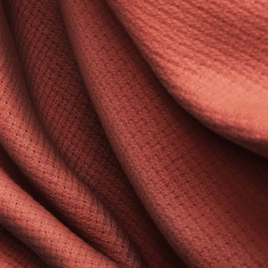La tela base es el Tweed - Chanel, con una composición de 100% poliéster, un gramaje de 420 gr/m2 y un ancho de 150 cm. El color liso impreso es de un intenso rojo inglés, con un CMYK de 33 84 78 44. Este color se caracteriza por su vibrante tonalidad y su alta saturación de pigmentos. El rojo es un color simbólico de la pasión, el amor, la fuerza y la vitalidad, siendo un tono que proyecta energía y dinamismo en cualquier diseño. Combina perfectamente con colores neutros como el negro, gris o blanco, aunque también puede ser un excelente contraste para tonalidades verdes, azules o amarillas en diseños más atrevidos y creativos.