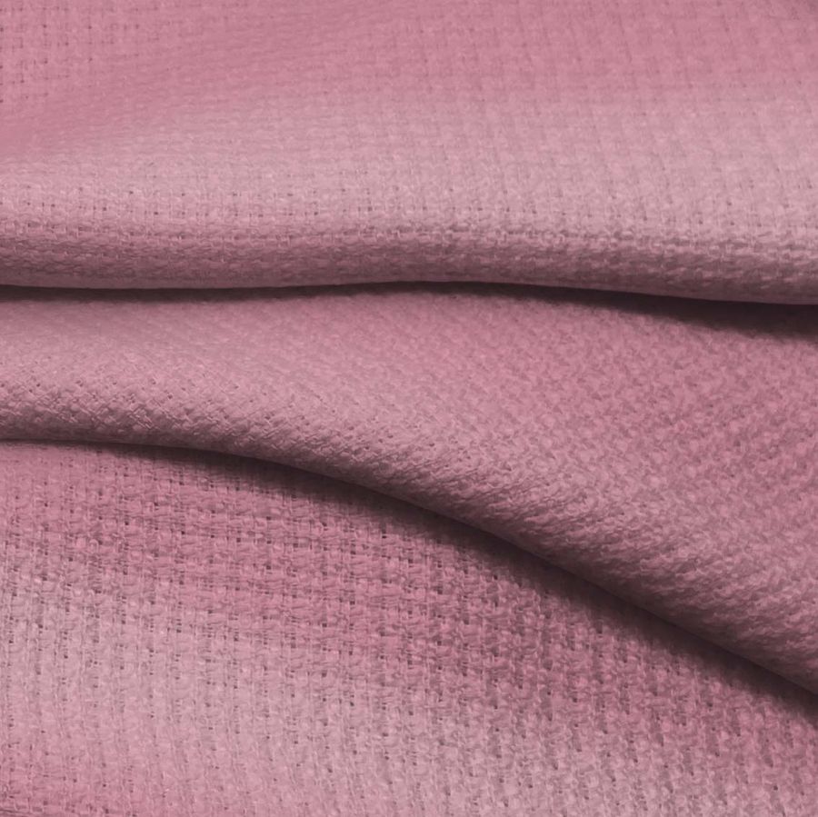 La tela base, Tweed - Chanel, es un tejido de tweed compuesto por 100% poliéster con un gramaje de 420 gr/m2 y un ancho de 150 cm. El color liso impreso es rojo puce, con un CMYK de 19 54 25 3. Este color es una variante del rojo intenso que se caracteriza por su romanticismo y sofisticación y combina perfectamente con tonos tierra como marrones y beiges.
