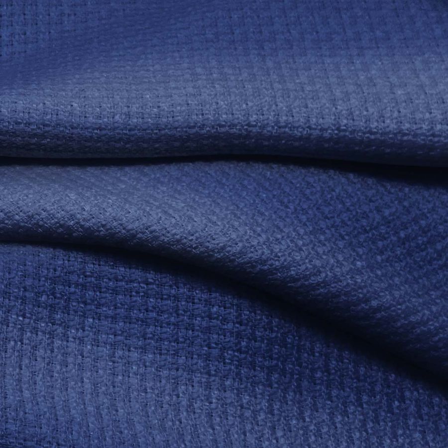 La tela base es Tweed - Chanel, compuesta por un 100% de poliéster, con un gramaje de 420 gr/m2 y un ancho de 150 cm. El color liso impreso es Azul Copenhague con un CMYK de 99-85-33-23. Este tono simboliza la elegancia y la confianza. El Azul Copenhague es un color secundario que se obtiene mezclando el Azul y el Magenta. Combinado con blanco representa el hielo, mientras que con amarillo crea una atmósfera más cálida.