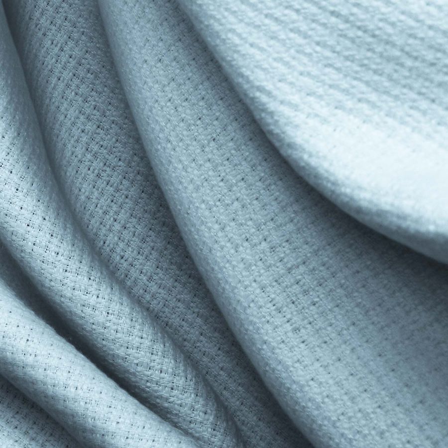 La tela base del tejido es un Tweed - Chanel de composición 100% poliéster, con un gramaje de 420 gr/m2 y un ancho de 150 cm. El color liso impreso es un Azul Glaciar con un CMYK de 37 6 6 0. Su tonalidad simboliza la frescura y elegancia de un paisaje glacial, y técnicamente se caracteriza por un azul claro con matices grisáceos que transmiten una sensación de tranquilidad y serenidad. En combinación con otros colores, el Azul Glaciar suele emplearse junto a tonalidades grises y blancas en decoración de interiores, o con colores neutros pálidos en moda femenina.