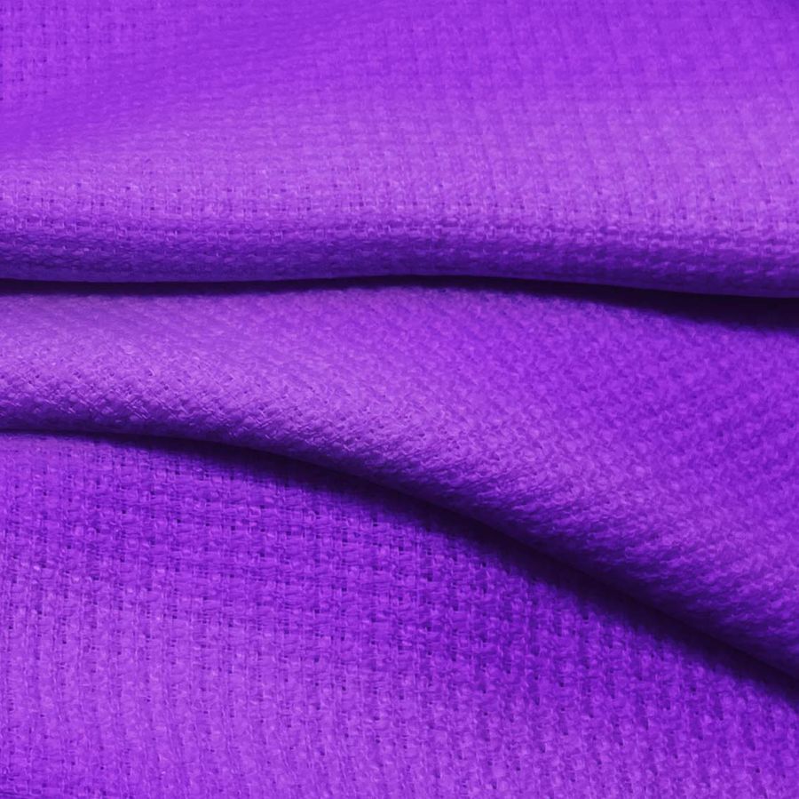La tela base Tweed - Chanel, con una composición de 100% POLIÉSTER, tiene un gramaje de 420 gr/m2 y un ancho de 150 cm. El color liso impreso en la tela es Azul Violeta Azulado con las tintas Cyan y Magenta predominantes. El CMYK del color es 74 81 0 0. Este color secundario es profundo y misterioso, evoca la tranquilidad y la paz. Combina muy bien con tonos grises y beige, así como con tonos más vibrantes como el rosa y el rojo oscuro.