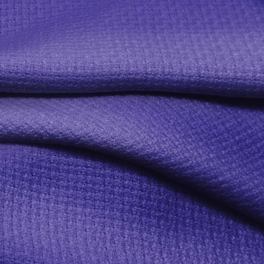 La tela base es Tweed - Chanel, compuesta por 100% poliéster, con un gramaje de 420 gr/m2 y un ancho de 150 cm. El color liso impreso es Azul Dark Slate Blue, con una tinta Cyan de 87, Magenta de 84, Yellow de 6 y Black de 1, con un CMYK de 87 84 6 1. Este color es profundo, elegante y sofisticado, evocando tranquilidad y serenidad. Combina perfectamente con tonos blancos o neutros, y también con un rosa claro o durazno.