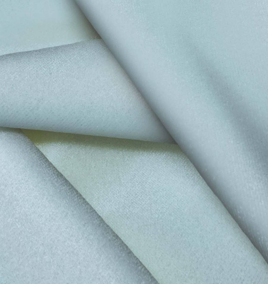 La tela base Terciopelo Retro - Paris es un terciopelo suave y brillante en tonos Azul CadetBlue, con un CMYK de 48 22 25 3. Combina especialmente con tonos neutros como blanco, gris y negro. Este color transmite calma y serenidad, ideal para crear ambientes relajantes y elegantes.