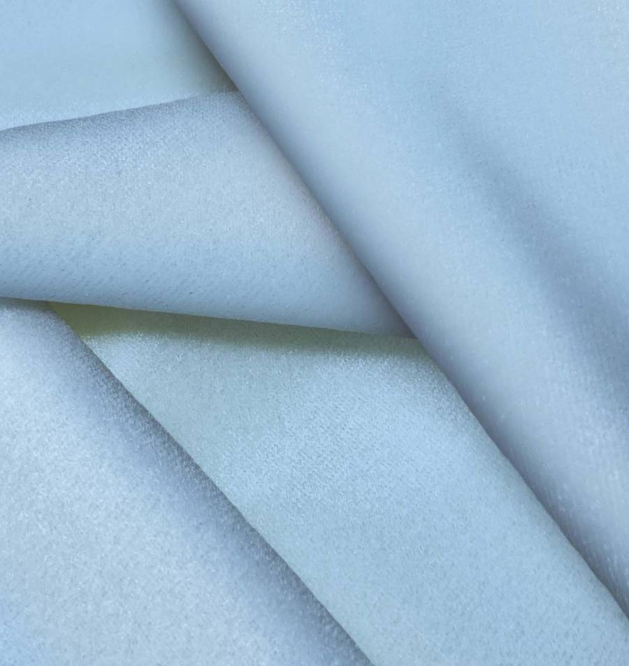 La tela base es el Terciopelo Retro - Paris en color Azul Seda con un CMYK de 51 23 5 0. Este color se caracteriza por ser vibrante y elegante, ideal para prendas de vestir y decoración de interiores. Combina especialmente bien con tonos neutros como blanco, gris y negro, así como con tonos metálicos como plata y oro.