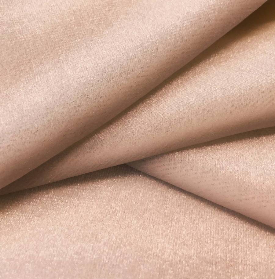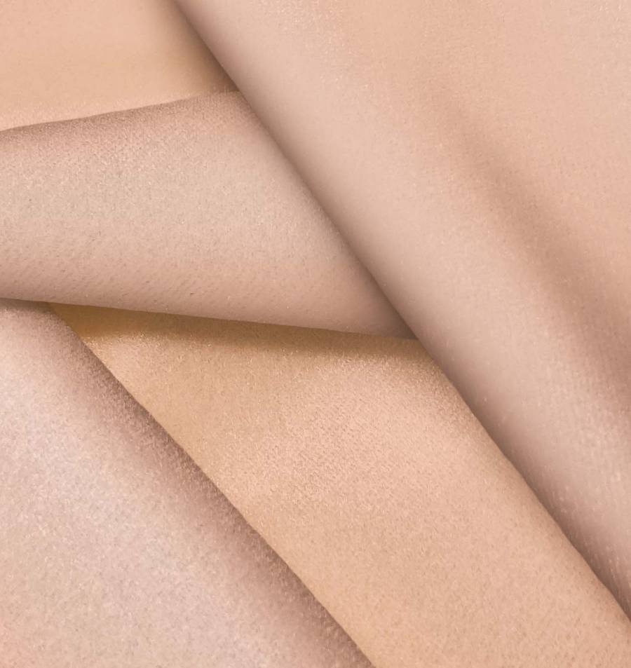 Las características generales del terciopelo incluyen un tacto suave, elasticidad y brillo visual. Estas cualidades se ven potenciadas por el color naranja claro, que aporta un toque de frescura y vitalidad a la tela.