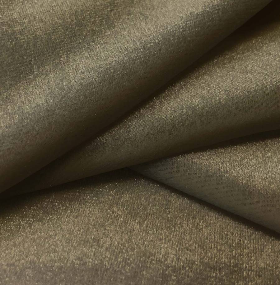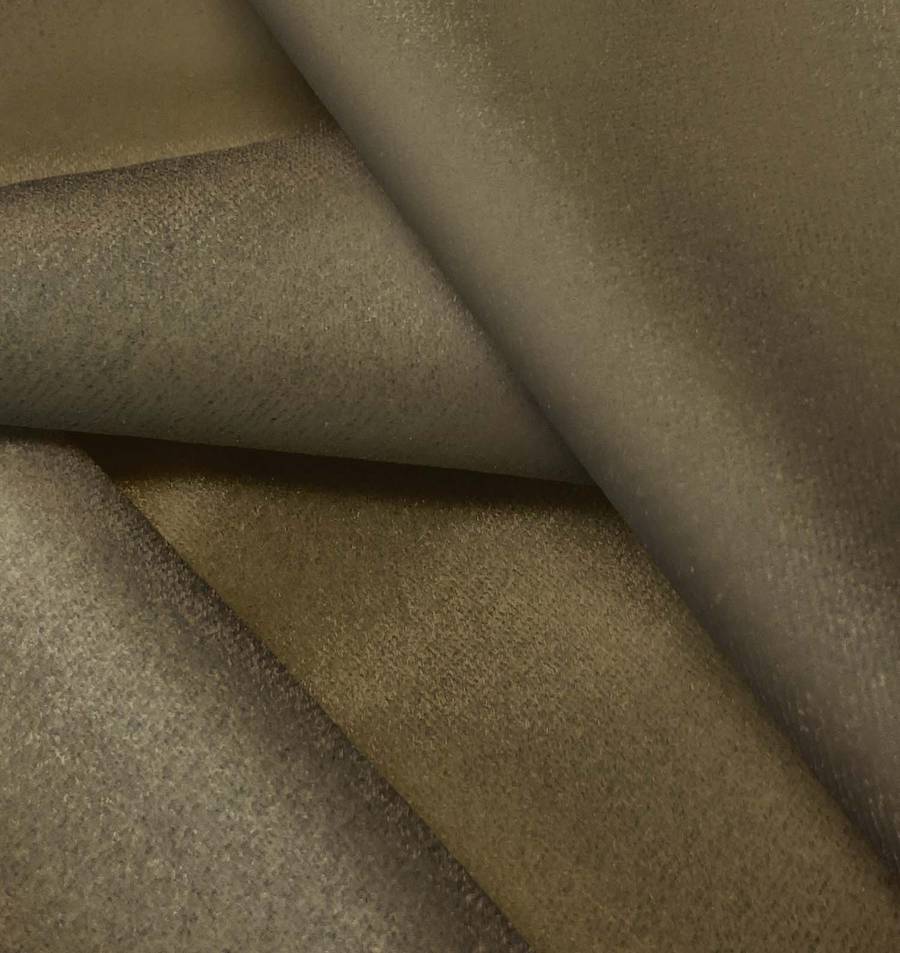 La tela base, Terciopelo Retro - Paris, es de terciopelo con una composición de 93% poliéster y 7% elastano, de color Marrón Moca con un CMYK de 52 53 80 54. Este color representa elegancia y calidez, combinando especialmente bien con tonos dorados, verdes y rojizos.