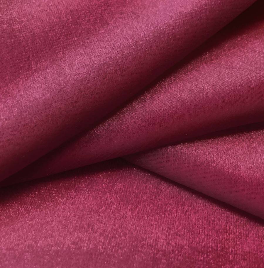 El tejido está impreso con un color liso a una sola cara por impresión digital textil, lo que garantiza una alta calidad y durabilidad en la reproducción del color. La textura suave, visual brillante y elástica del terciopelo se complementa perfectamente con el rico tono rojo granate, creando un aspecto lujoso y moderno.
