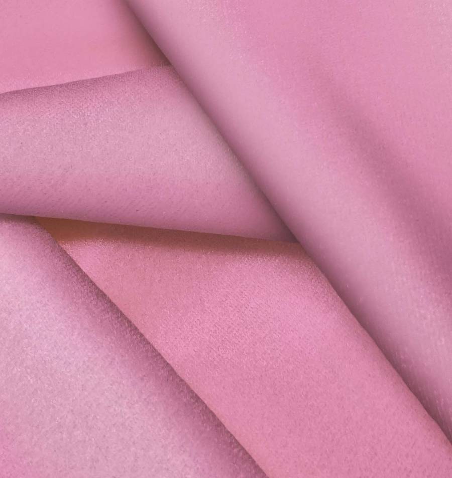 La tela base es el Terciopelo Retro - Paris en color Rosa Cadillac, con un CMYK de 18 64 18 1. Este color es un tono suave y brillante, que combina muy bien con colores como el gris, blanco, negro y dorado.