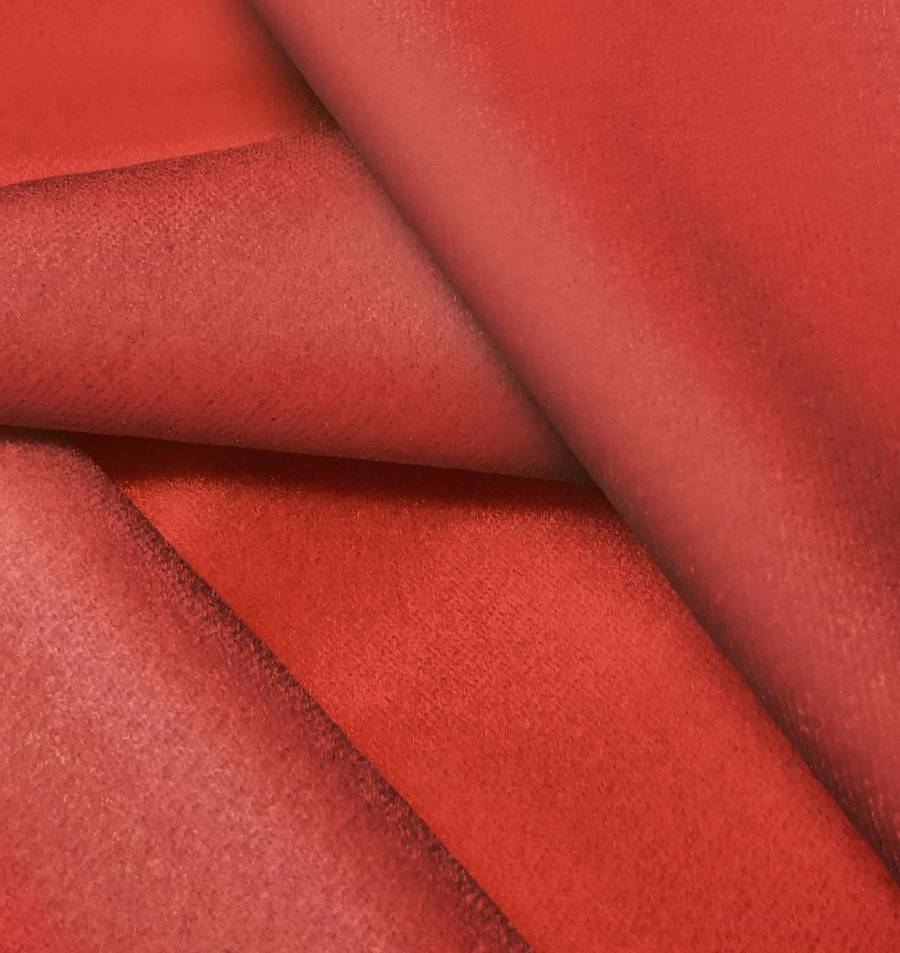 La tela base de Terciopelo Retro - Paris es de terciopelo, compuesta por 93% poliéster y 7% elastano, con un gramaje de 245 gr/m2. El color liso impreso es un Rojo Ladrillo refractario, con una combinación de tintas Cyan 18, Magenta 93, Yellow 93 y Black 9 en el CMYK. Se trata de un color vibrante y profundo que combina muy bien con tonos neutros como blanco, gris y negro, así como con tonos tierra y dorados.