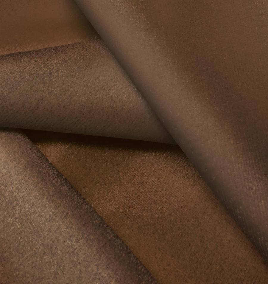 La tela base, Terciopelo Retro - Paris, es de terciopelo con una composición del 93% poliéster y 7% elastano. El color impreso es Marrón Oscuro, con CMYK 43 70 91 64, que combina especialmente con tonos neutros como beige y blanco.