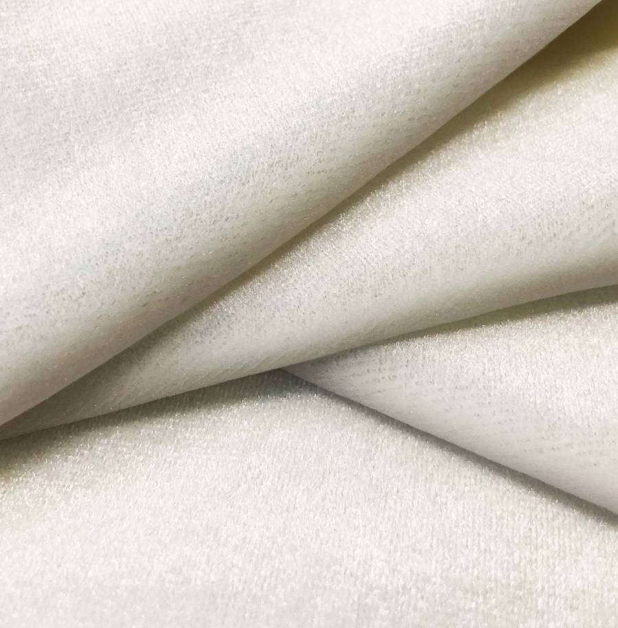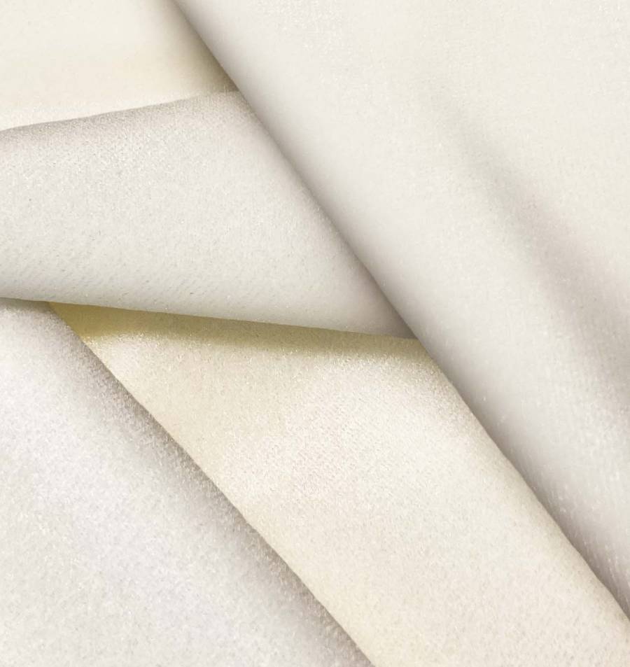 La tela base, Terciopelo Retro - Paris, es una tela de terciopelo compuesta por 93% poliéster y 7% elastano, con un gramaje de 245 gr/m2 y un ancho de 150 cm. Su color liso impreso es un tono suave de marfil, con una combinación de tintas cyan, magenta y yellow en proporciones de 4, 9 y 18 respectivamente, y un 0 de tinta black (CMYK: 4 9 18 0).