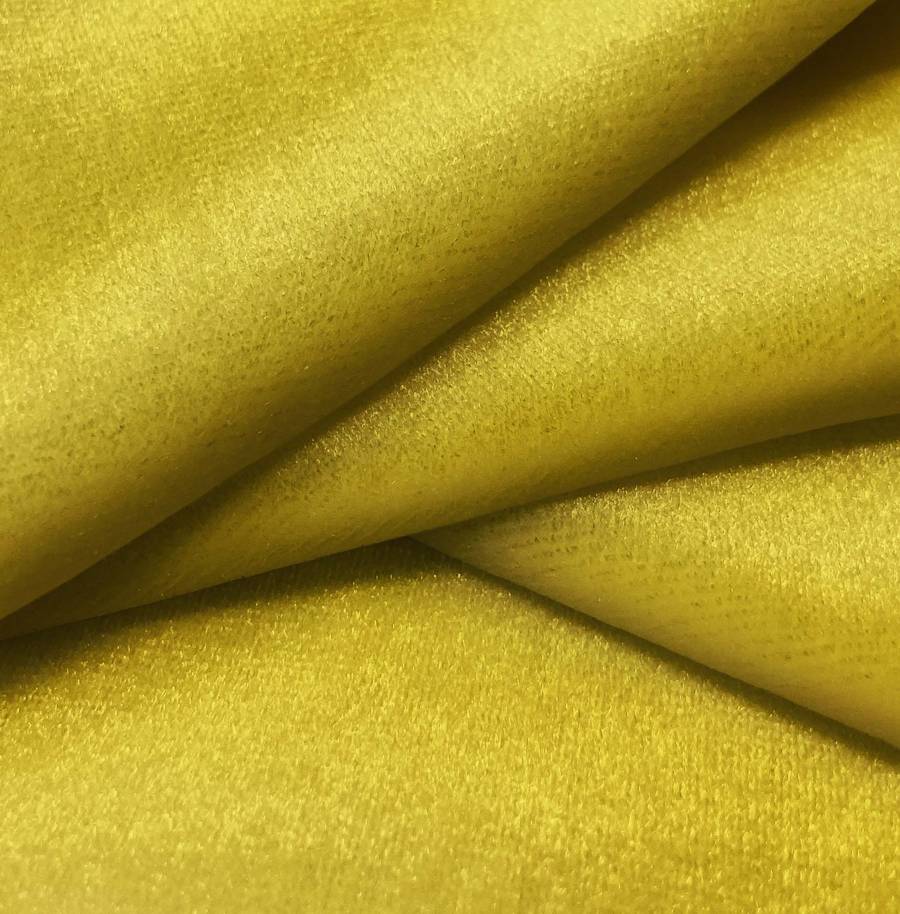 La tela base es Terciopelo Retro - Paris en color Amarillo Galleta, con un CMYK de 20 29 98 7. Este color combina perfectamente con tonos neutros como beige, blanco y marrón, creando un ambiente cálido y acogedor.