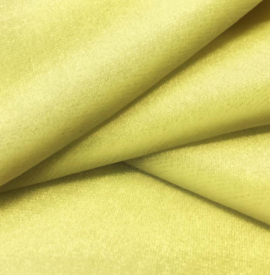La tela base, Terciopelo Retro - Paris, es un suave y brillante terciopelo de color amarillo maíz, con un CMYK de 5 4 72 0. Este color transmite energía y alegría, combinando especialmente bien con tonos neutros como blanco, gris o beige.