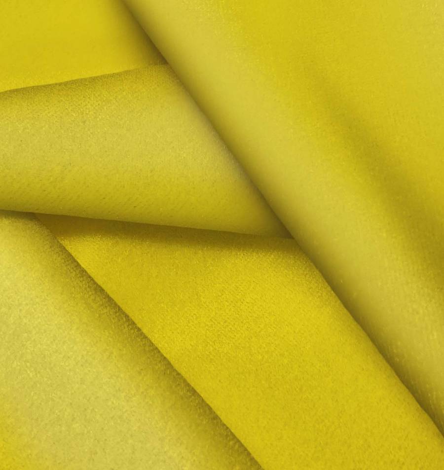 La tela de Terciopelo Retro - Paris se caracteriza por ser suave al tacto, brillante visualmente y elástica. El color liso impreso en ella destaca por su intensidad en los tonos amarillos y dorados, aportando alegría y luminosidad a cualquier prenda o pieza decorativa.