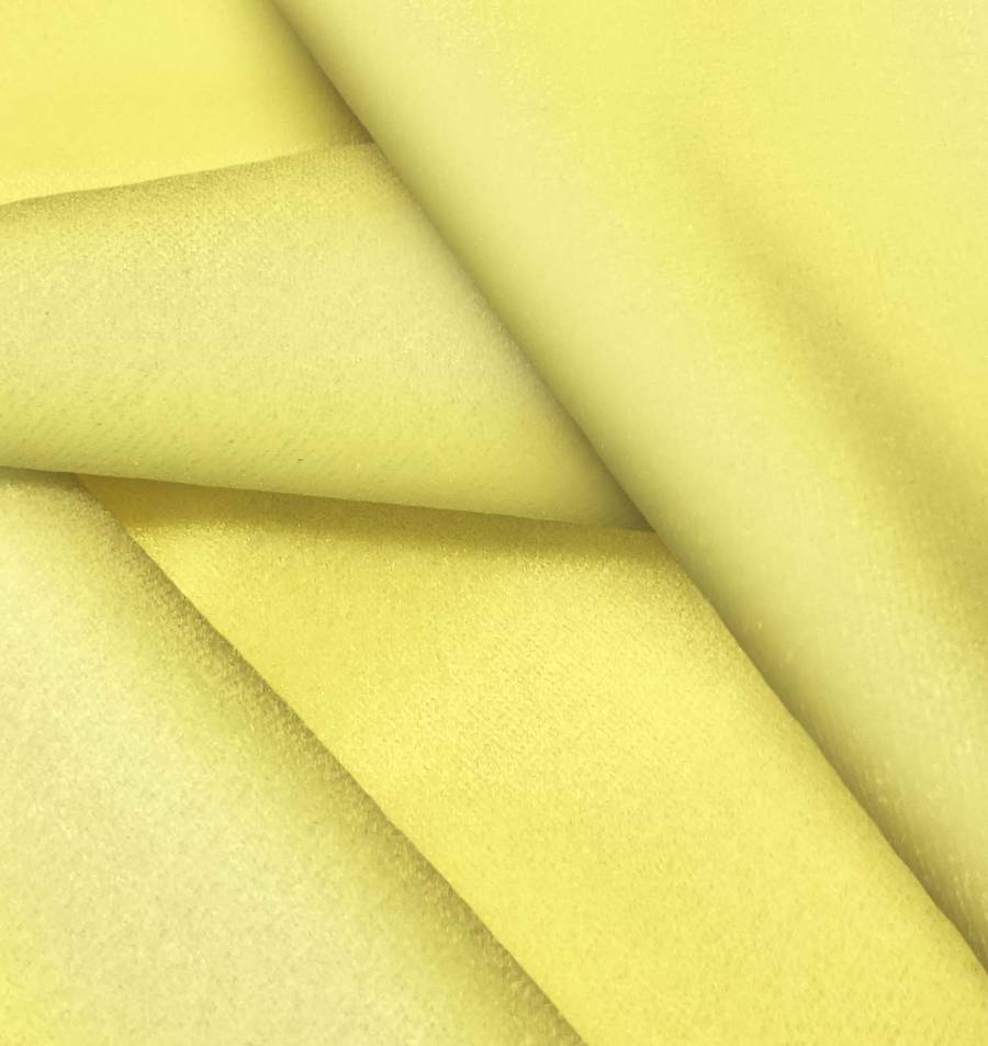 Tela base: Terciopelo Retro - Paris en color amarillo maíz (CMYK: 5 1 70 0), un color cálido y vibrante que transmite alegría y luminosidad. Combina especialmente bien con tonos neutros como blanco, gris y negro para resaltar su intensidad.
