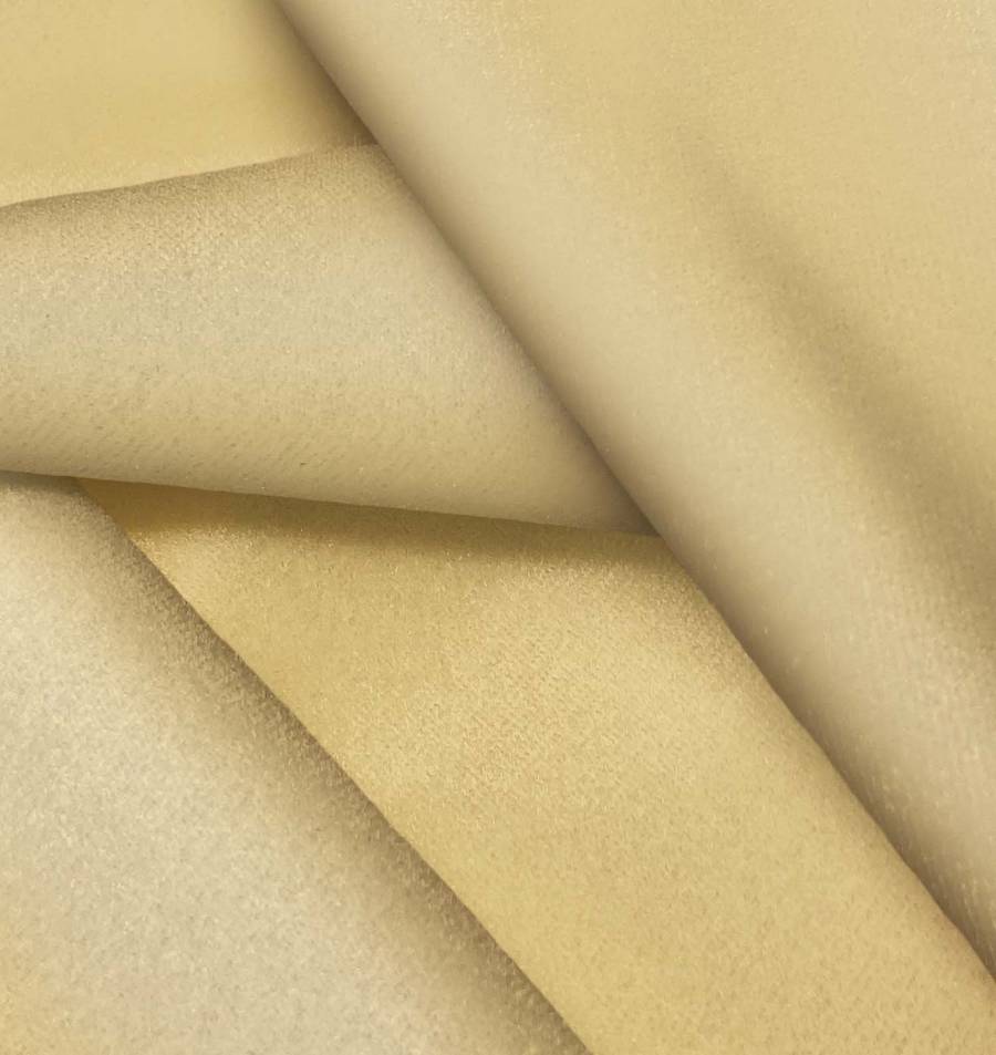 La tela base, Terciopelo Retro - Paris, es un suave tejido de terciopelo en color Marrón Camel, con una composición de 93% poliéster y 7% elastano, cuyo color liso refleja un CMYK de 20 30 60 7. Este tono marrón sutil se combina armoniosamente con colores neutros como beige, blanco y negro, así como con tonos más cálidos como el amarillo y el naranja.