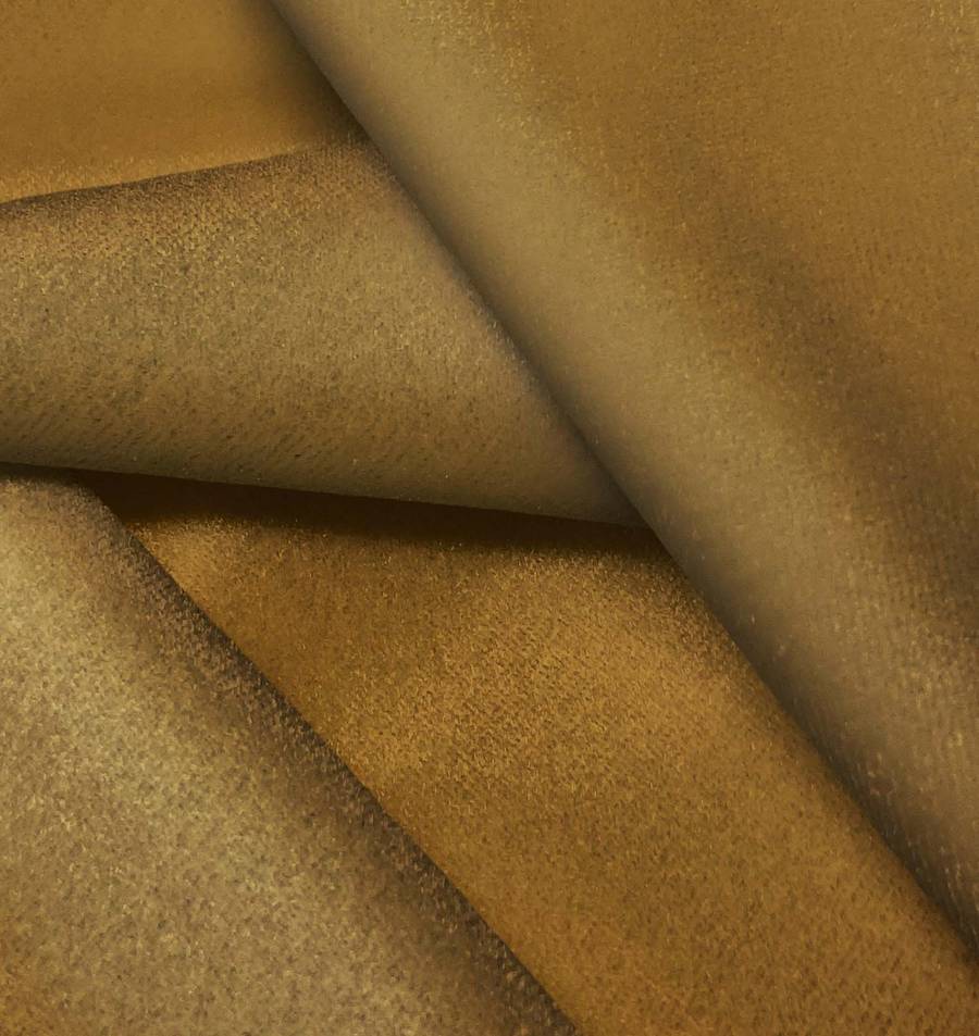 La tela base de este tejido es Terciopelo Retro - Paris, de composición 93% POLIÉSTER y 7% ELASTANO, con un gramaje de 245 gr/m2, ancho de 150 cm. El color liso impreso es Marron, Ocre Dorado Tostado, con un CMYK de 36 55 100 42. Este color evoca calidez y elegancia, combinando perfectamente con tonos tierra, verdes oscuros y azules marinos.
