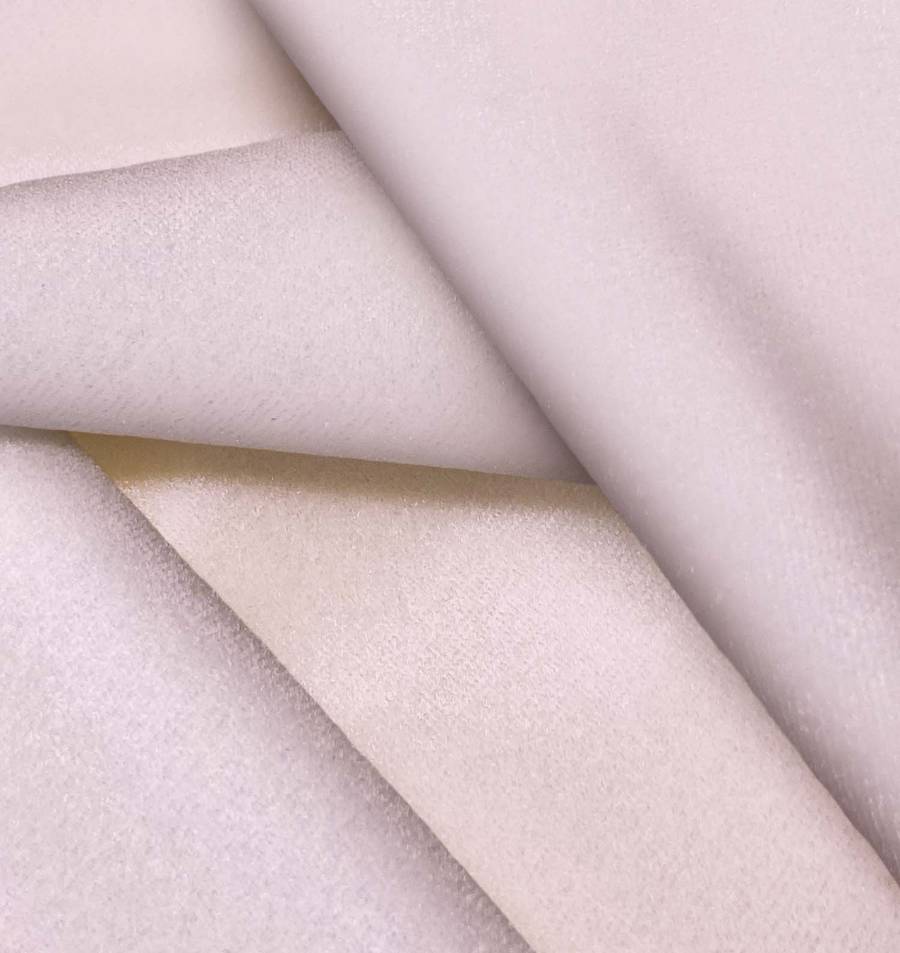 La tela base, Terciopelo Retro - Paris, es un suave y brillante terciopelo de color rosa y oro, con una composición de 93% poliéster y 7% elastano. El color liso impreso tiene un CMYK de 13 29 13 0, lo que le brinda una mezcla armoniosa entre tonos rosados y dorados, combinando especialmente bien con colores neutros como blanco, negro y gris.