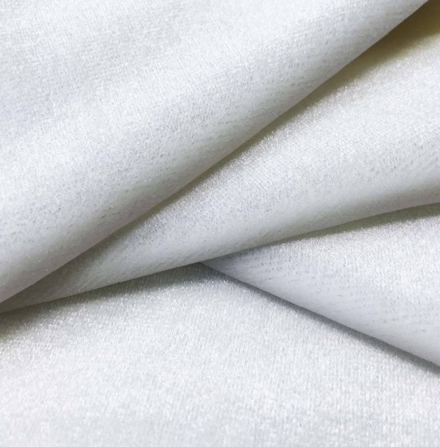 El tejido está impreso con el color liso a una sola cara por impresión digital textil, lo que le da un acabado de alta calidad y durabilidad. Las características generales de la tela base incluyen una textura suave, visualmente brillante y elástica, que la hacen perfecta para prendas de vestir y decoración.