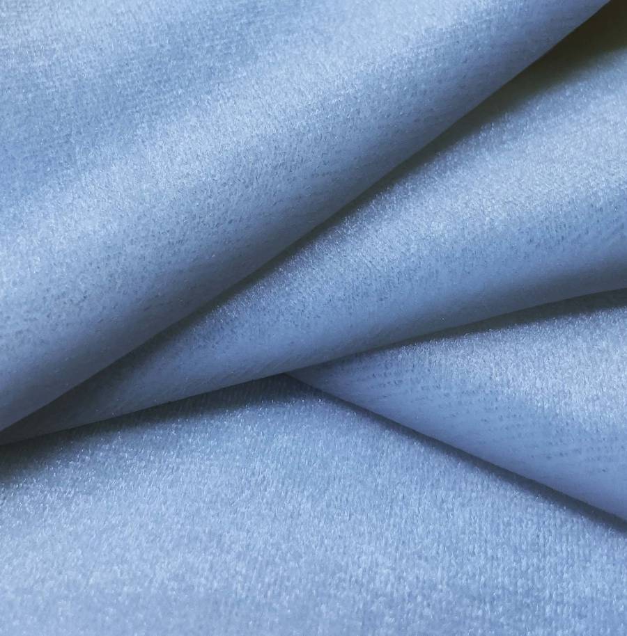 La tela base utilizada en este caso es el Terciopelo Retro - Paris, un tejido de terciopelo con una composición de 93% poliéster y 7% elastano. El color liso impreso es Azul/Violeta claro, con un CMYK de 62 40 5 0. Este color secundario combina tonos azules y violetas, ideal para un aspecto elegante y sofisticado.