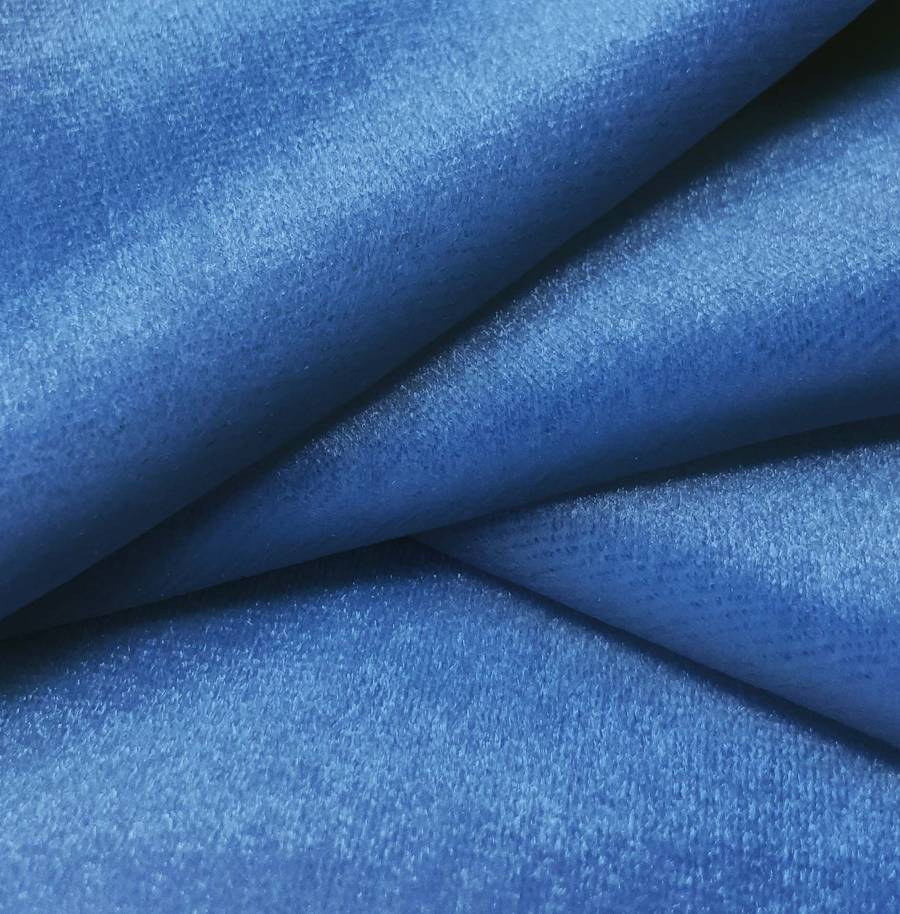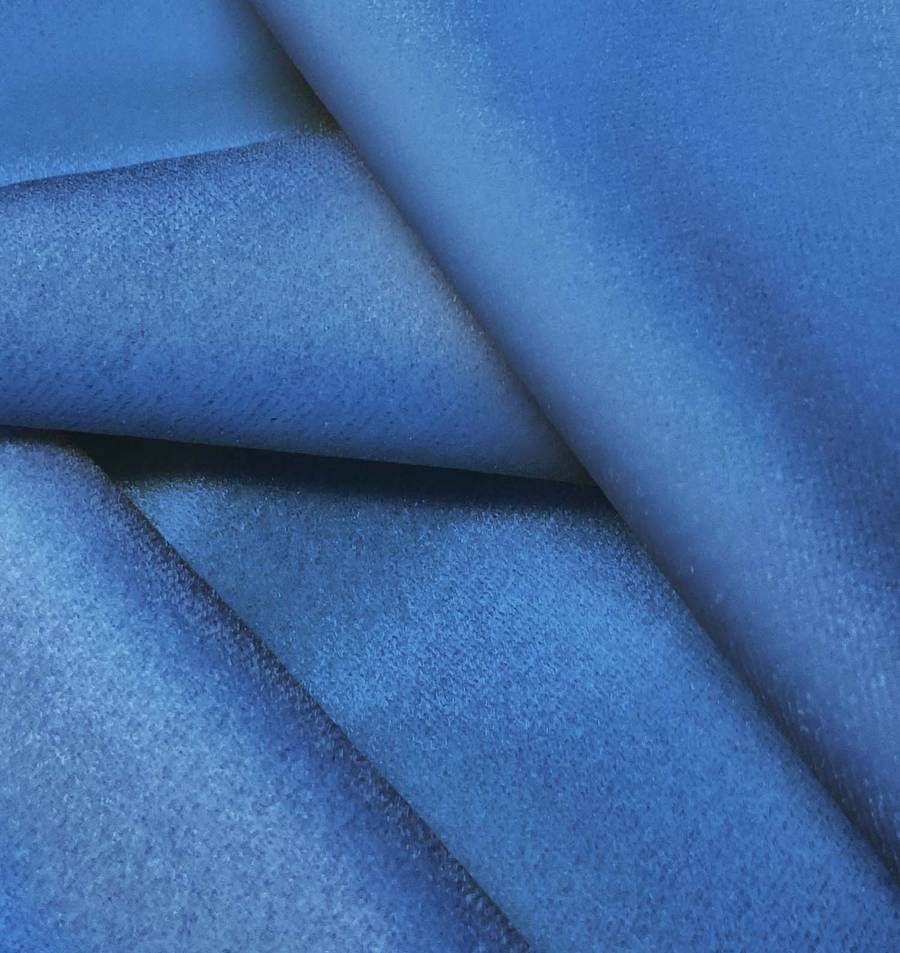 El tejido está impreso con el color liso a una sola cara por impresión digital textil, lo que le otorga una apariencia brillante y duradera. La textura suave y elástica del terciopelo se complementan con la tonalidad nítida y armoniosa del Azul Celeste.