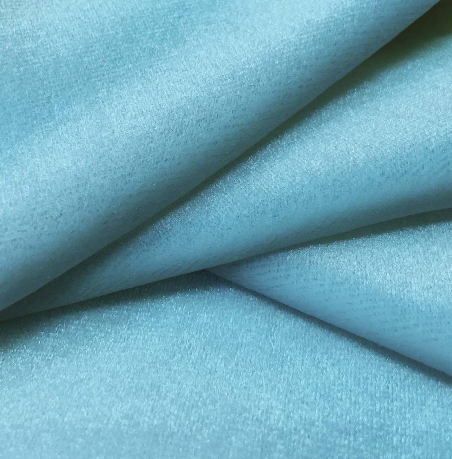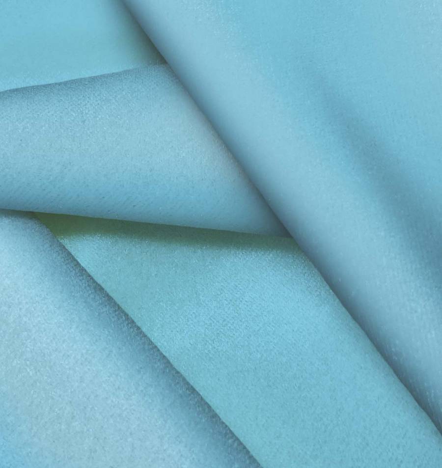 La tela base, Terciopelo Retro - Paris, es un suave terciopelo con composición de 93% poliéster y 7% elastano en un color Azul Hielo Glacial con un CMYK de 63 21 17 1. Este tono se caracteriza por su elegancia y frescura, perfecto para añadir un toque de sofisticación a cualquier prenda o decoración. Combina especialmente bien con blanco, gris claro y plateado, realzando su brillo y suavidad.