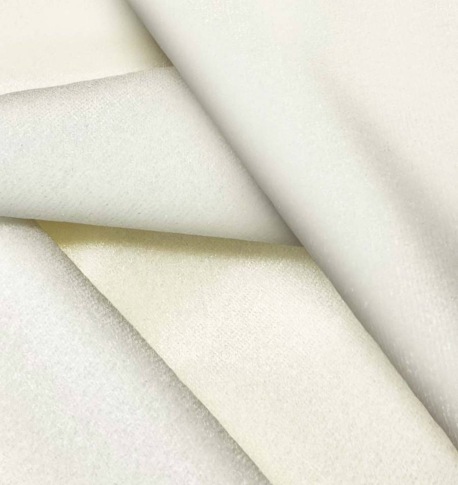 La tela base, Terciopelo Retro - Paris, destaca por su suavidad y brillo característico. El color impreso, Crudo Seda de Maíz (CMYK: 6 3 17 0), ofrece una combinación elegante y sofisticada. Se combina perfectamente con tonos neutros como beige, blanco o gris, resaltando su luminosidad y versatilidad.