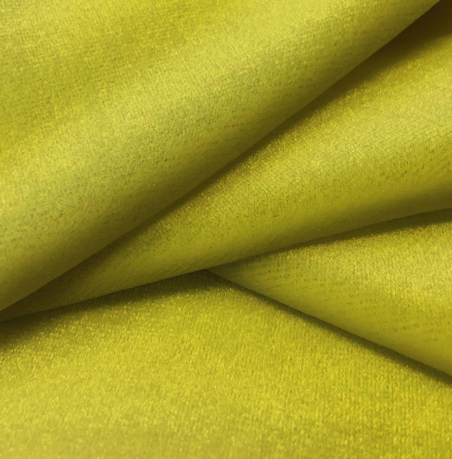 La tela base Terciopelo Retro - Paris es un suave y brillante terciopelo de color verde olivo, con un CMYK de 38 29 100 12. Este color se mezcla perfectamente con tonos neutros como beige y blanco, así como con colores más audaces como el azul marino y el mostaza.