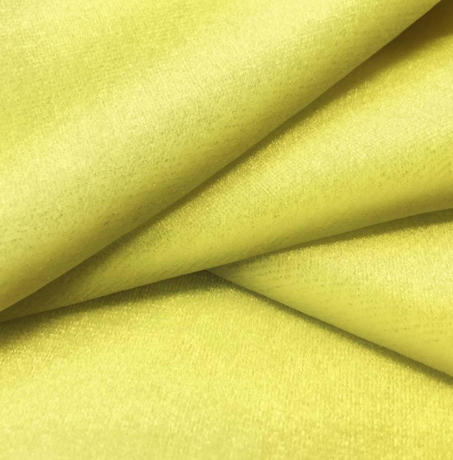 La Tela de Terciopelo Retro - Paris es una tela suave y brillante de color amarillo canario, con un CMYK de 5 1 76 0. Este color secundario se caracteriza por su luminosidad y viveza, combinando especialmente bien con tonos neutros como el blanco o el beige, así como con colores complementarios como el azul o el morado.